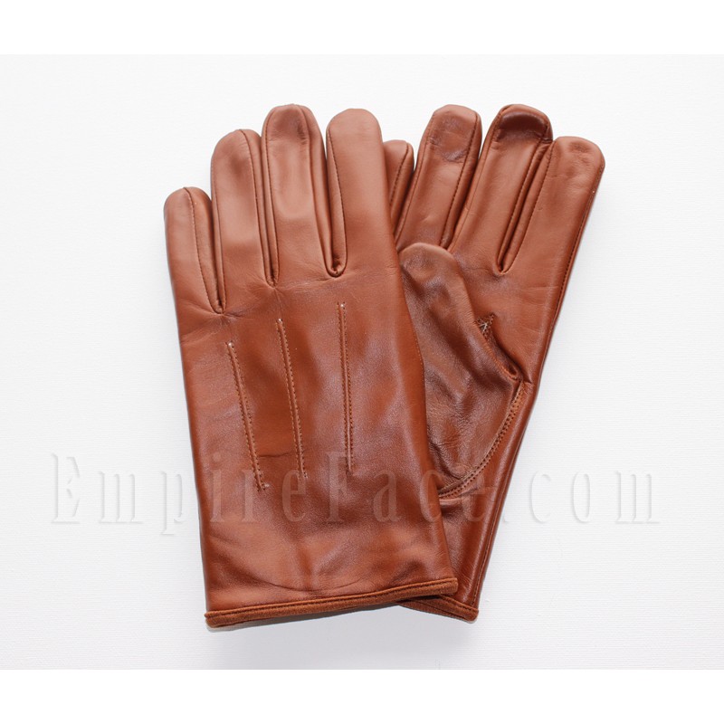 - Tan (Faux) Leather- Centre Palm Vent- Dome and Stud Fastener- Lined- Traditional 3 lines on the back of the hand