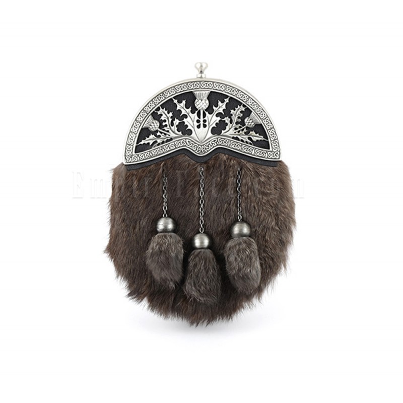 - A leather traditional sporran, made using Smoke Rabbit fur and mounted