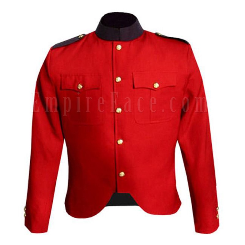 - Canadian Police Style Cutaway Tunic in Red Wool with Navy Collar and Epaulettes